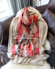 秋冬新款 初筛羊绒 爱珊瑚色 经典钻石山羊绒围巾/小披肩女