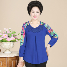 中老年女装衬衫中年人大码春秋季妈妈装长袖夏装衬衣蕾丝上衣长袖