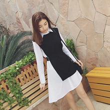 2017春装新款韩版衬衣两件套中长款连衣裙不规则下摆收腰短裙女夏