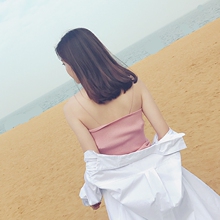 2017春百搭V领针织吊带修身显瘦露背细肩带打底衫内搭小背心女夏