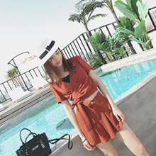 2017新款韩版V领学生阔腿短裤连衣裤短袖高腰系带雪纺连体裤女夏
