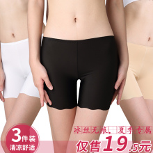 3条装 女士夏季冰丝防走光无痕打底裤平角安全裤保险内裤三分短裤