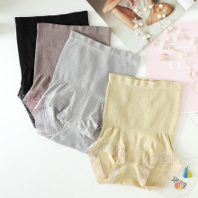 2条装无缝高腰微收腹打底内裤 女士产后收腰裤蕾丝弹力塑身打底