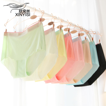 【4条装】女士无痕内裤中腰冰丝薄丝滑透气性感纯色棉裆三角底裤