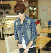 春季牛仔外套男韩版破洞学生修身帅气日系复古男士夹克长袖上衣潮
