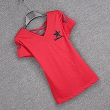 欧洲站2017新款夏烫钻五角星棉t恤女休闲上衣显瘦大码短袖打底衫