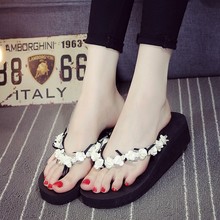 甜美风手工原创花朵厚底拖鞋夏季女时尚百搭沙滩人字拖夹脚拖女鞋
