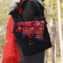 族韵女包民族风绣花刺绣包包单肩手提帆布女包绣花包长相守