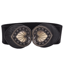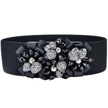 冷兵器 新款仿水钻松紧宽腰封连衣裙装饰腰带女皮带黑色玫瑰装饰