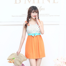 2017新款裙式游泳衣圆点连体平角保守显瘦遮肚修身小胸女泳装批发