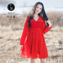 月芝猫原创2017春夏新品中国风女装雪纺长裙长款沙滩连衣裙1066A