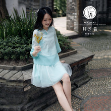 月芝猫原创设计 2017夏季新款改良中国风两件套连衣裙短裙女1133A