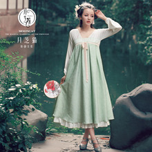 月芝猫原创 2017春季新品改良中国风古风汉服中式针织连衣裙女988