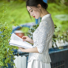 【唐之彩】百草园 中袖唐装改良旗袍上衣女式春季新款2017原创