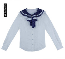 新款特价 自然元素正品 海军风荷叶边领纯棉长袖衬衫