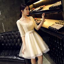 小礼服短款2017新款春季宴会主持人晚礼服订婚连衣裙伴娘服修身女