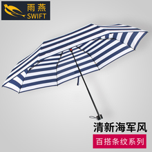 雨燕原创洋伞韩版设计海军条纹女士淑女折叠防风晴雨伞
