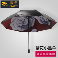 雨燕时尚小黑伞全遮黑胶伞布繁花玫瑰梵高樱花贝拉米红防晒晴雨伞