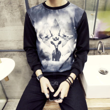 春秋季新款圆领修身卫衣男式长袖T恤男士打底衫贴身体恤秋衣服潮