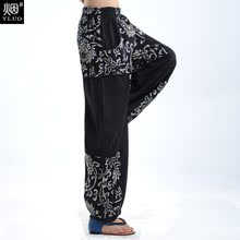 烟罗 包邮民族风女裤棉麻亚麻大码大版黑色灯笼裤阔腿裤长裤子