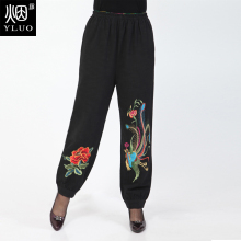 烟罗 包邮民族风女裤棉麻凤凰绣花刺绣松紧腰灯笼裤阔腿裤长裤