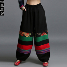 烟罗 包邮原创民族风秋冬女裤绣花棉麻松紧腰灯笼裤阔腿裤长裤子
