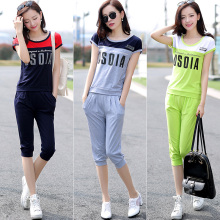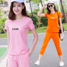 运动服套装女夏季跑步七分裤夏天远动衣服纯棉休闲两件套25周岁35