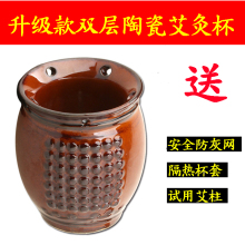 蕲康正品 艾灸杯双层艾灸罐陶瓷温灸仪器具 魔灸罐刮痧艾灸盒瓷杯