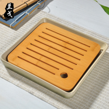 兰戈陶瓷竹制小茶盘功夫茶具茶台套装嵌入式便携居家办公干泡茶海