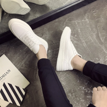 新款小白鞋男韩版厚底百搭白色松紧带板鞋男休闲鞋男士皮鞋青年潮