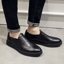 秋冬新款低帮男鞋英伦布洛克雕花皮鞋男真皮休闲皮鞋一脚蹬平底鞋