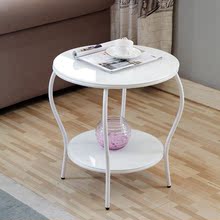 现代简约玻璃圆角几新款五金双层钢化边几电话几沙发圆几小户型