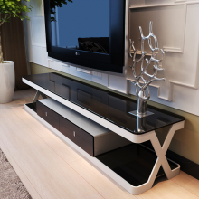 现代简约时尚小户型五金钢化玻璃电视柜组合柜地柜黑白色双层储物