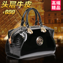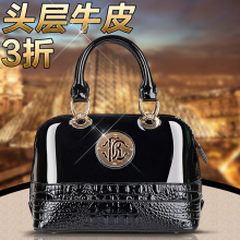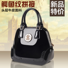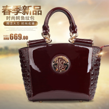 2017时尚夏季潮漆真皮鳄鱼纹亮面女包真皮手提包头层牛皮女士包包