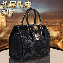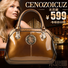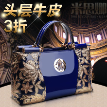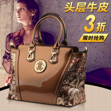 米思娜头层牛皮女包大包2017春节新款欧美时尚女士漆皮真皮手提包