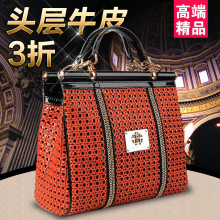 米思娜2017款翻毛皮时尚潮流女士大包头层牛皮手提包压花真皮女包