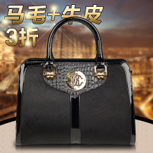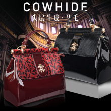米思娜真皮马毛2017新款漆皮时尚欧美潮手提包头层牛皮单肩女士包