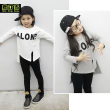 女童长袖T恤 2017春款童装字母不规则中长款T恤宝宝上衣春装潮034