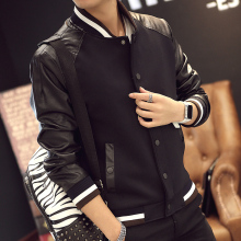 男士夹克青年春季休闲拼接皮衣男上衣服韩版修身棒球服潮男装外套