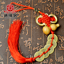 开光风水纯铜钱五帝钱桃木葫芦挂件招财镇宅化煞汽车挂饰