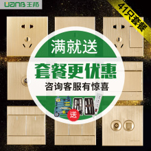 王邦 开关插座面板家用五孔拉丝香槟金二三插K5系列墙壁电源86