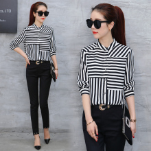 时尚套装女长袖2017春装新款女装名媛条纹上衣两件套小脚裤修身