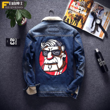 羊羔毛外套牛仔棉衣男 冬装印花加厚棉袄潮 青年男士棉服2015新款