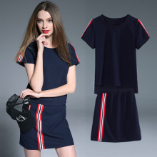加肥加大码女装胖mm运动休闲条纹短袖t恤半身裙两件套裙子套装裙