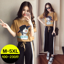 2017夏装新款显瘦加肥加大胖mmT恤上衣两件套阔腿裤套装大码女装