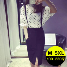 2017夏装新款加大码女装胖mm波点雪纺中袖背带裙子套装裙两件套潮