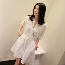 2017夏装新款大码微胖女装藏肉胖妹妹胖mm白色中袖v领a字裙连衣裙