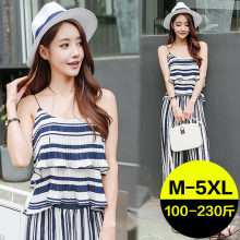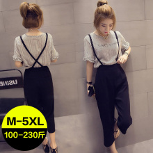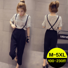 2017夏装新款200斤加大码女装胖妹妹胖mm两件套背带裤套装时尚潮