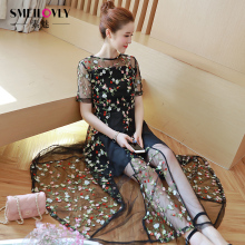 2017夏装新款胖妹妹大码女装200斤欧根纱刺绣蕾丝长裙短袖连衣裙