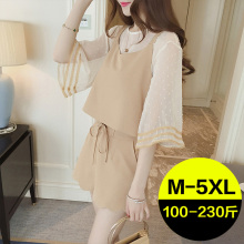 2017夏季新款加肥加大码女装胖mm胖妹妹雪纺两件套短裤套装时尚潮